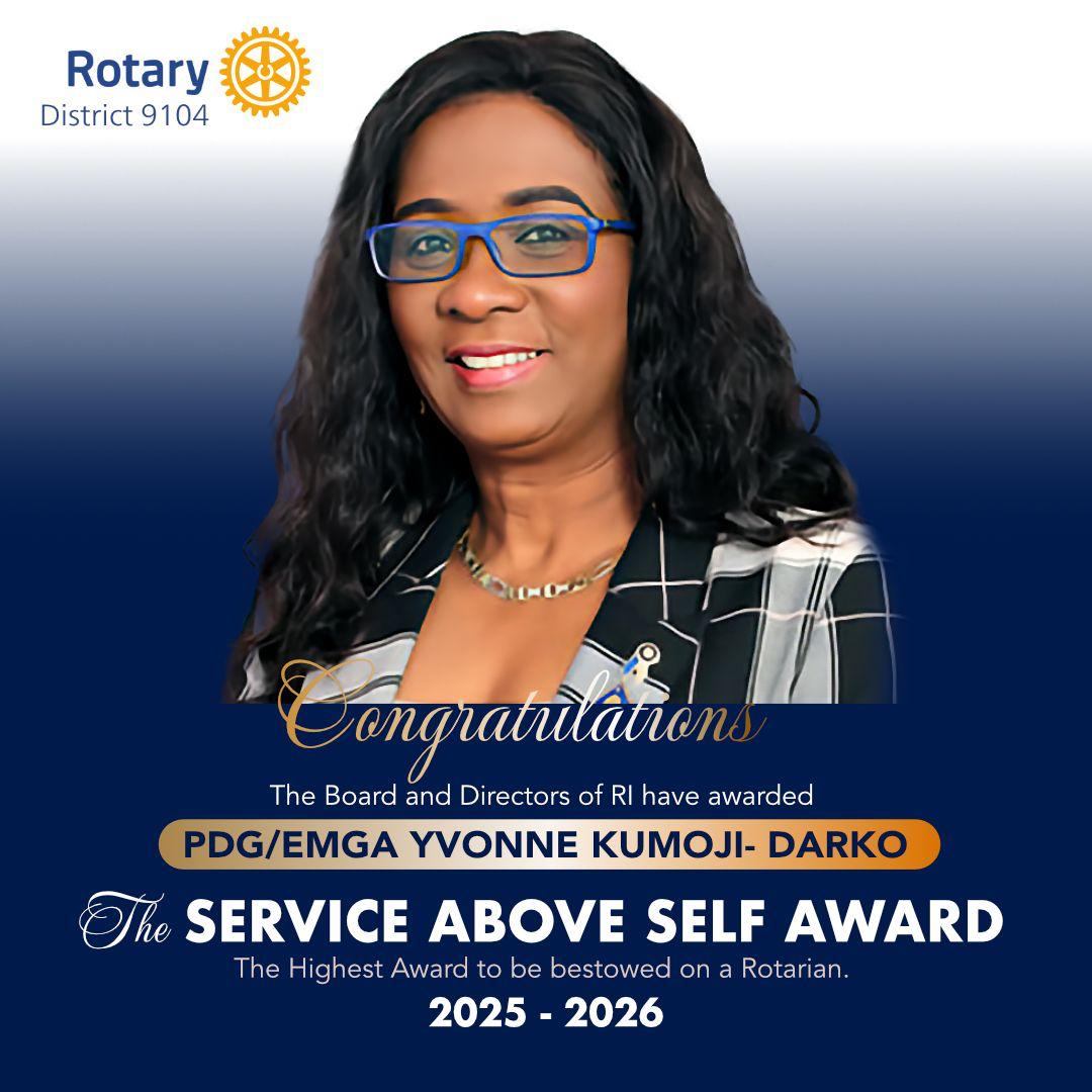 PDG/EMGA YVONNE KUMOJI-DARKO RECEIVES ROTARY SERVICE ABOVE SELF AWARD