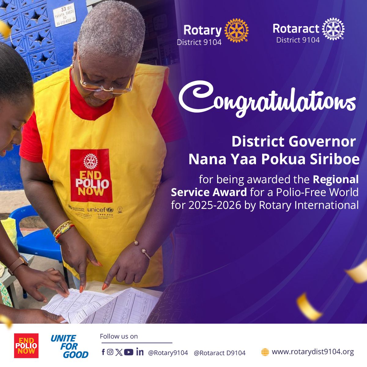 CONGRATULATIONS TO DISTRICT GOVERNOR NANA YAA POKUA SIRIBOE!