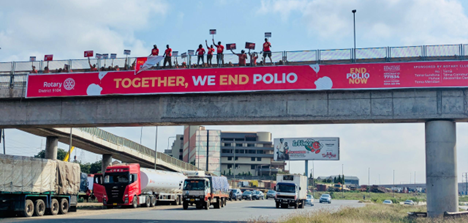 Seven Rotary Clubs in South-eastern Ghana have sponsored a 92-foot by 5-foot banner on the busy ECOWAS transnational overhead bridge in Tema, Ghana. The banner serves as a daily reminder to thousands of commuters that the fight against polio is ongoing and provides donation channels to help fund vaccine efforts to eradicate the disease. The Continue Reading