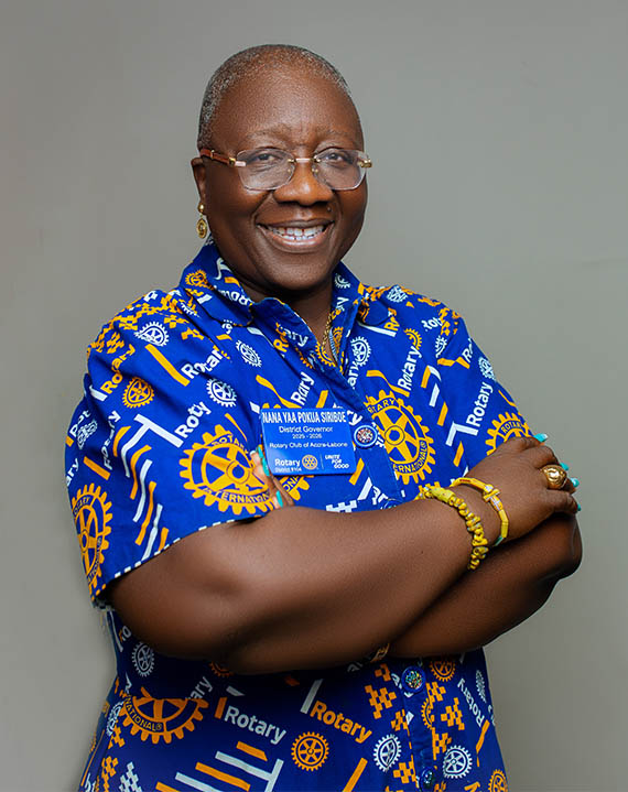 DG Nana Yaa is a charter member of the Rotary Club of Accra-Labone and a Multiple Paul Harris Fellow. She is also a member of Accra ToastMasters Club.